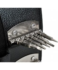 Kovček vsebuje 24 izvijačev v vrstah po 6. Vsaka konica je nameščena v posebnem držalu . Če ga želite izvleči, zložite varnostni jeziček in obrnite konico za 180 °, dokler ni v širšem delu ročaja, skozi katerega bo prosto zdrsnila ven. To je rešitev, ki pomaga obdržati razmeroma majhne konice na mestu in preprečuje, da bi se izgubile.